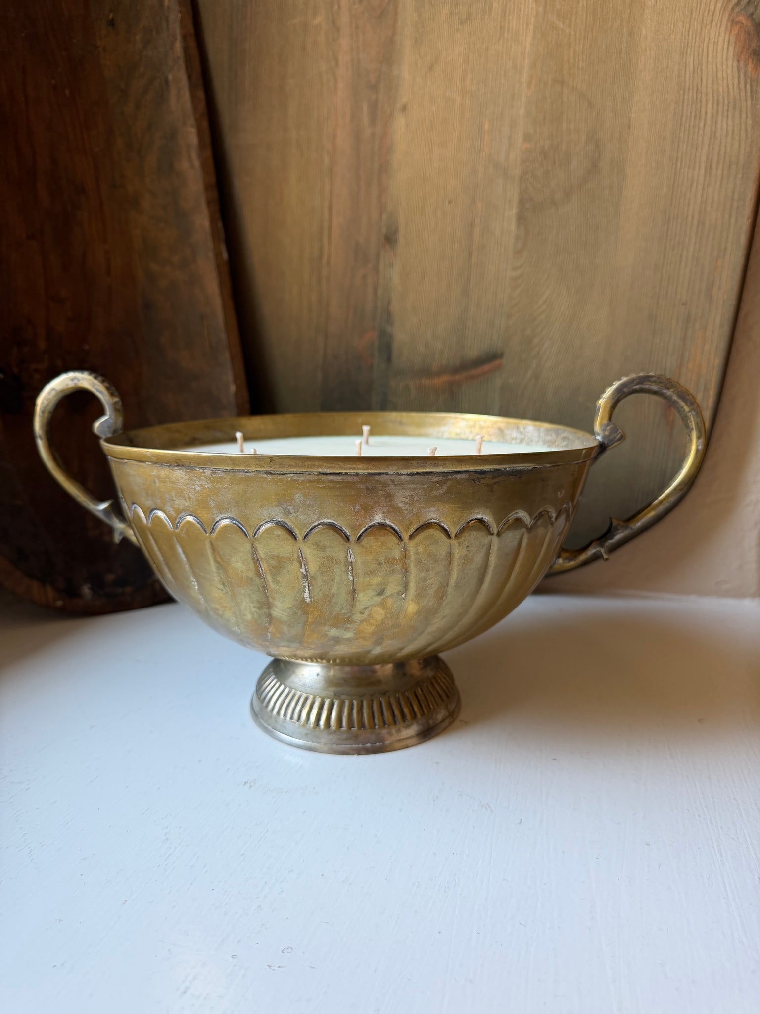 Tarnished Brass Pedestal Bowl Candle