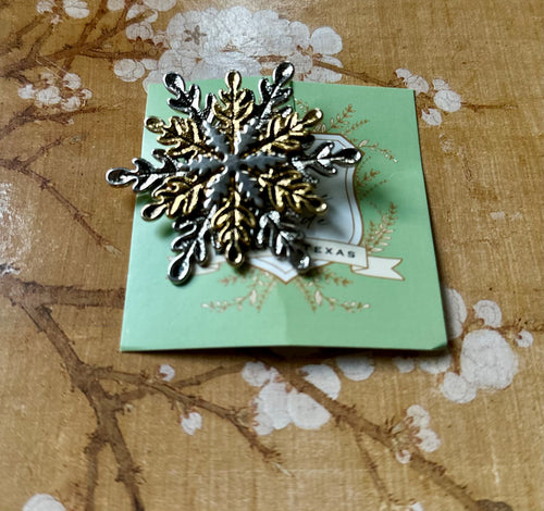 Vintage MJ Two Tone Snowflake Brooch Pin