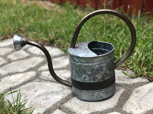 Galvanized Metal Watering Can with Zinc and Brass Finish